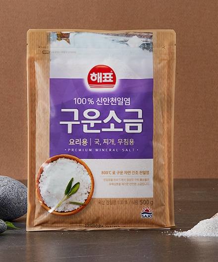 구운 소금 : 구운 소금은 말 그대로 소금을 구워서 만든 것으로써, 천일염을 만드는 과정에서 미처 씻기지 않은 간수나 불순물, 부유물 등이 제거되어 쓴맛이 사라지는 것은 물론, 인체에 유해한 성분 또한 제거되어 건강에도 좋은 소금입니다. 이러한 구운 소금은 수분 함량이 적어서, 국, 찌개, 탕, 나물류 등에 폭넓게 사용됩니다.